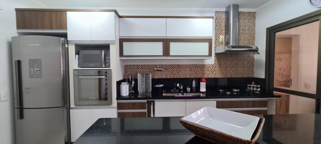 Linda Cobertura de 212m² de (área útil), distribuídos em 4 dormitórios 2 sendo suíte, Sala ampla e varanda, cozinha com acesso a lavandeira, 3 Dormitórios 1 sendo suíte e mas banheiro social, parte superior com sala de estar totalmente decorada e uma suíte MASTER e mas espaço gourmet com churrasqueira. 2 vagas de garagem. Localizado em dos melhores MODÚLOS DE RIVIERA DE SÃO LOURENÇO há poucos metros da praia. Agende sua visita com um de nossos Consultores.